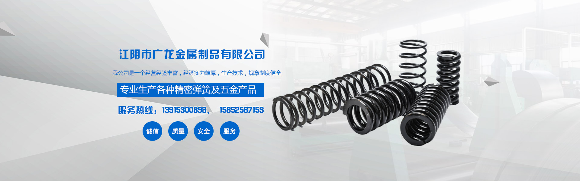 江陰市廣龍金屬制品有限公司,位于風(fēng)景美麗的江陰市。我公司是一個(gè)經(jīng)營(yíng)經(jīng)驗(yàn)豐富,經(jīng)濟(jì)實(shí)力雄厚,生產(chǎn)技術(shù),規(guī)章制度健全,服務(wù)多元化,產(chǎn)品多元化,產(chǎn)品質(zhì)量高的金屬制品公司。主營(yíng)產(chǎn)品:電動(dòng)工具彈簧、各類(lèi)化妝品噴霧壓簧、各類(lèi)異形彈簧、化妝品瓶蓋配重彈簧、精密儀器壓簧、卡簧、拉簧、扭簧、塔簧、油封彈簧、座椅掛鉤等彈簧兼容行業(yè)多的綜合性公司,如果您對(duì)我公司的產(chǎn)品服務(wù)感興趣,請(qǐng)?jiān)诰€留言或者來(lái)電咨詢,聯(lián)系電話:13915300898!